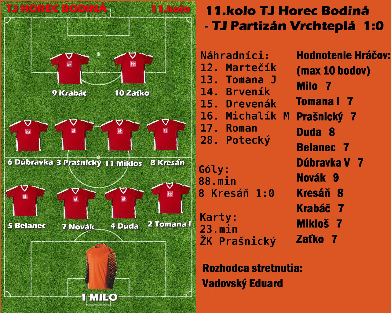 TJ HOREC BODINÁ - TJ Partizán Vrchteplá 1:0 (0:0)